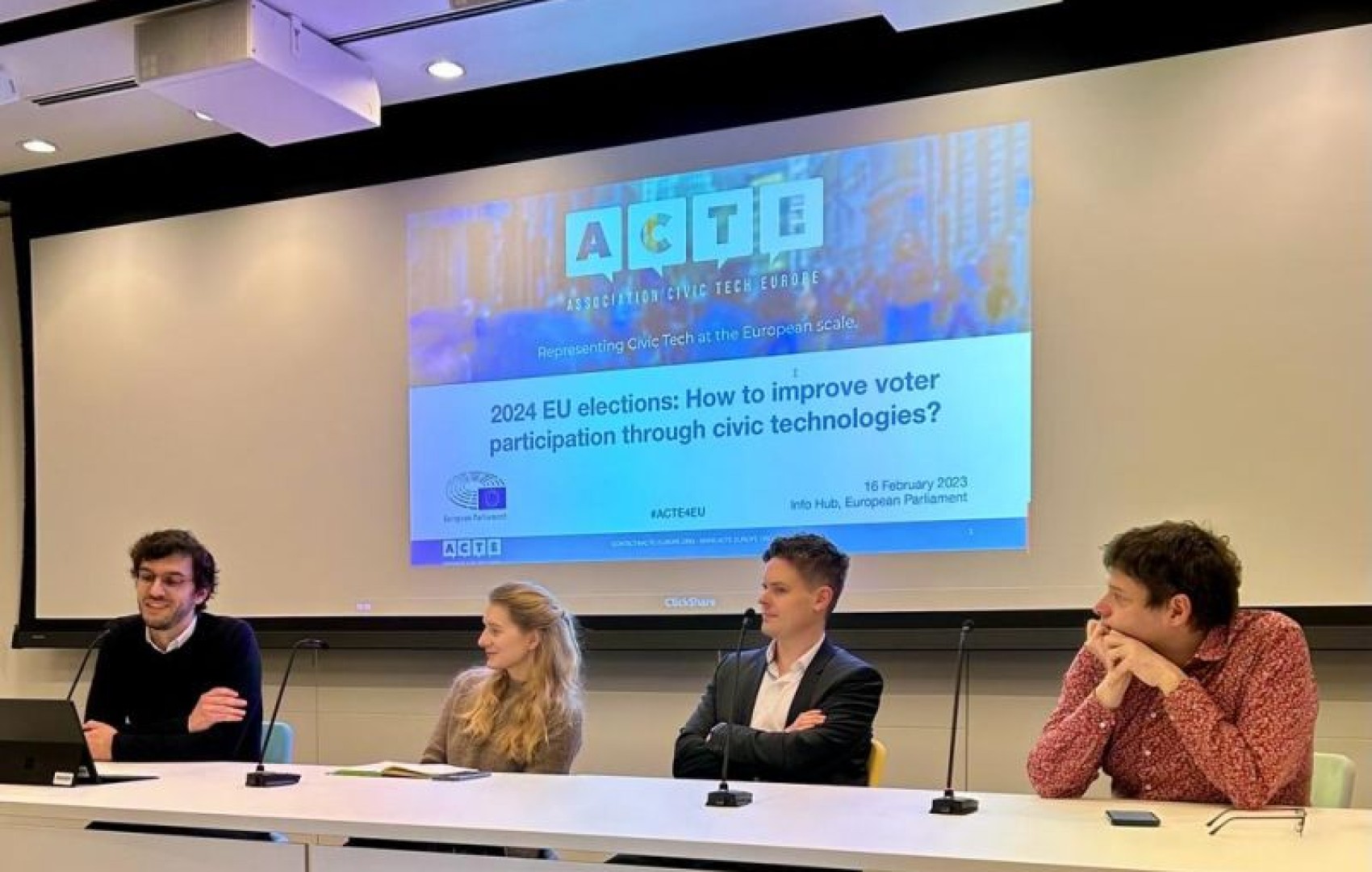 On February 16, 2023 in view of the upcoming 2024 European elections, ACTE gathered experts in communication, citizen participation and Civic Tech at the European Parliament.